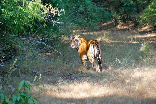 The rare wild Bengal Tiger looks back at me. This photo was taken on a jeep safari in the Bandhavgarh Tiger Reserve in central India. The story behind this image is the subject of my main Common Application essay.