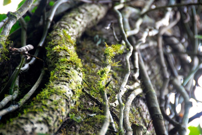 Intertwining Japanese maple branches create a natural window through which to look at the sky. My goal was to create layers of leaves by using shadows and high focus around the edges of the window.