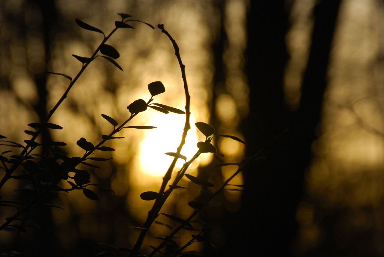 These are silhouettes of leaves in the late afternoon sun. I was struck by the golden hue of the sun, so I maneuvered into a position where I could capture silhouettes in front of it. I also wanted to put the background out-of-focus to emphasize the relaxed evening feel. My vision realized, I took about 300 photos in a few minutes and selected this one, which has the strongest juxtaposition. Among the rest of my portfolio, this photo is my favorite from an artistic standpoint.